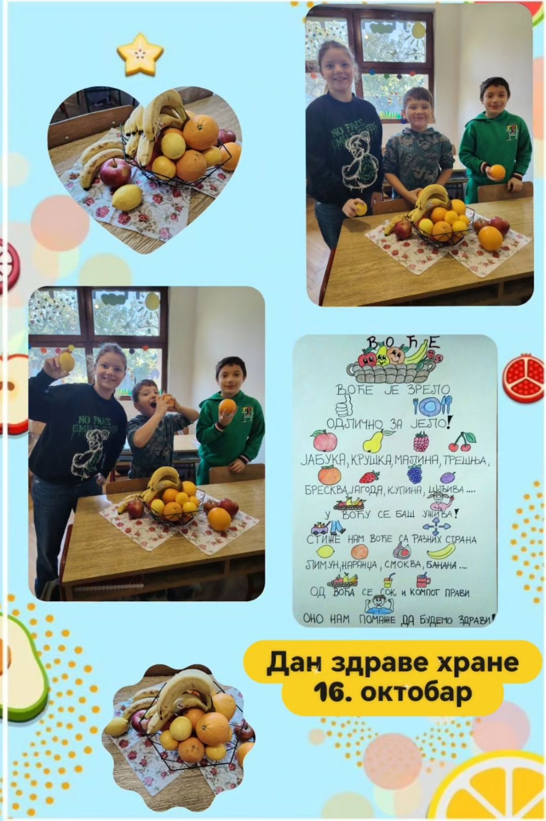 Ученици подручног одељења у Миријеву су са својом учитељицом, Катарином Туфегџић, обележили Дан здраве хране.
