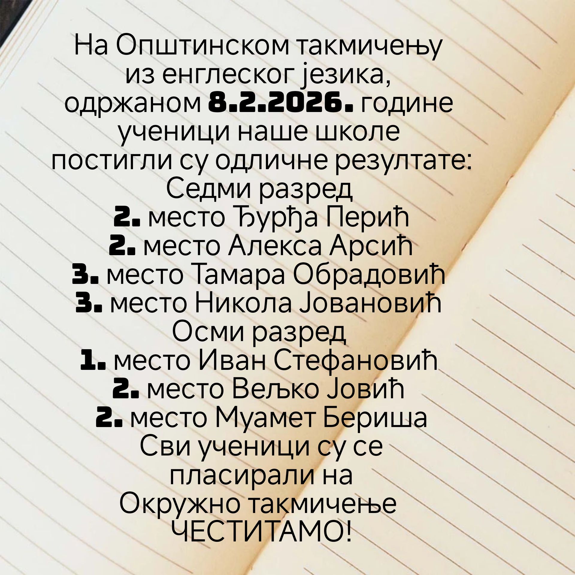 Све честитке ученицима и наставници Милици Радојевић и једно велико БРАВО!