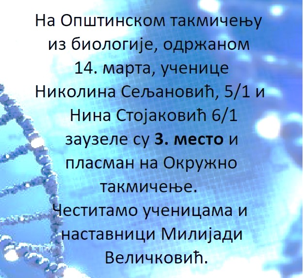 Ученица Марија Стојановић (7. разред) освојила је ТРЕЋЕ место а Гиоргиа Перић четврто место на републичком такмичењу.