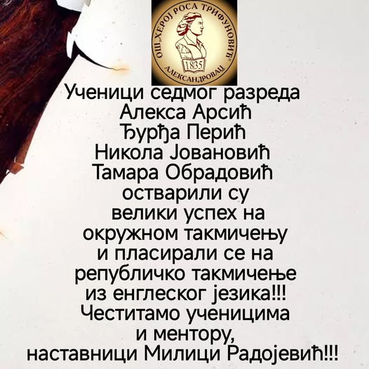 Ови ученици су учествовали на Окружном такмичењу у Жагубици, на коме је Анастасиа Стокић заузела треће место.